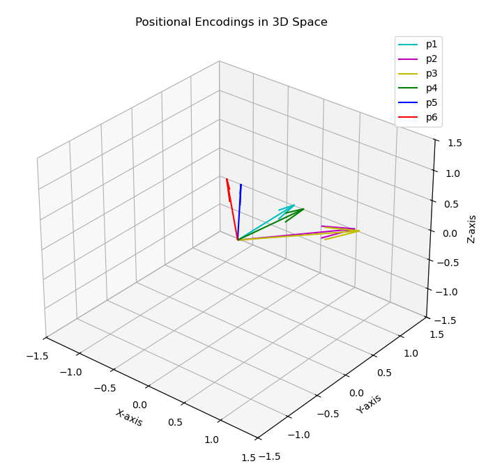 There are three pairs, and vectors in each of them overlap so it seems they don’t encode positional information very well. However, when the positional_encoding function is used in the form I posted here, it gets better: