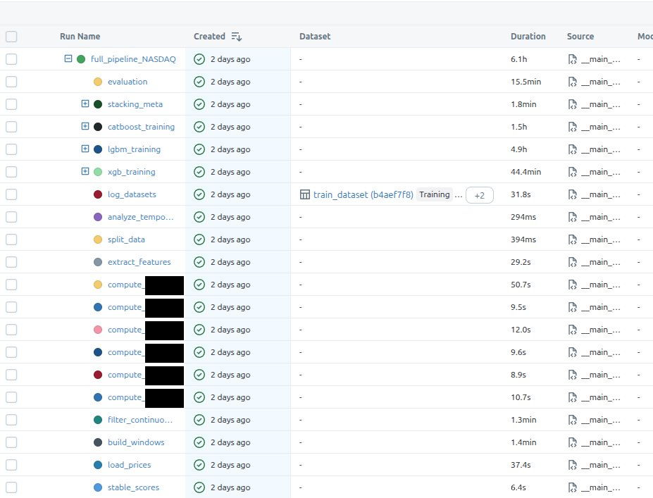 Requirements can be laid out simply as building an ML training pipeline that will find the best types/sets of types/hierarchies of models. Before I even started working on this specific piece, I experimented quite a lot in Jupyter Notebooks, exploring how far I could get with XGBoost, LightGBM, and CatBoost on their own. Then I figured out that ensemble methods might work better, since all three are similar in spirit but different in implementation, and perhaps they make different mistakes.